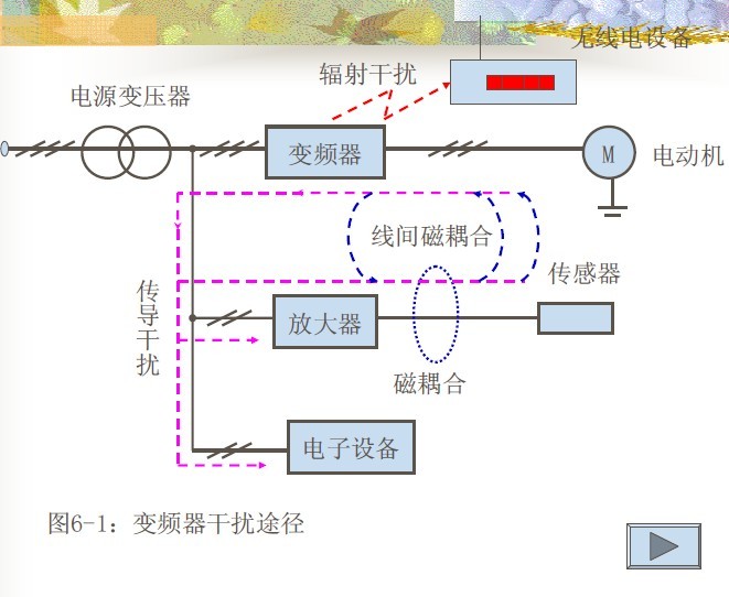 (2)電磁耦合干擾:對變頻器平行敷設(shè)的其它線路產(chǎn)生磁耦合