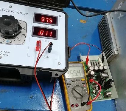 接頭來(lái)連接電源,正負(fù)極線柱之間的距離較小,帶壓測(cè)量時(shí)很容易短路,測(cè)量時(shí)盡量使用帶鱷魚線夾的表筆,加壓前先把表筆夾好,推薦采用下圖測(cè)量方式。