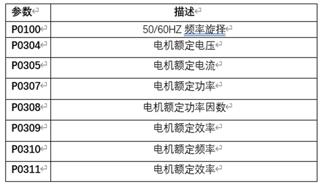 (以上根據(jù)電機銘牌設(shè)置,注意P0309參數(shù),只有當P0100=1時可見,為0時內(nèi)部自動計算該值。)