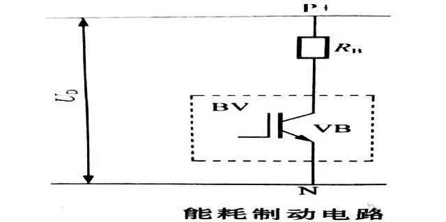 能耗制動電路由制動電阻RB和制動單元BV構(gòu)成,如下圖所示。