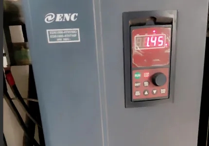 變頻器啟動后,電位器調(diào)頻不靈敏,升降均有較長時(shí)間遲滯,且波動依舊,這就排除了負(fù)載原因。那么高概率是電位器不良。在設(shè)置里將電位器給定F0.00更改為鍵盤給定F0.01,通過鍵盤上的上鍵、下鍵來調(diào)頻,頻率穩(wěn)住了。