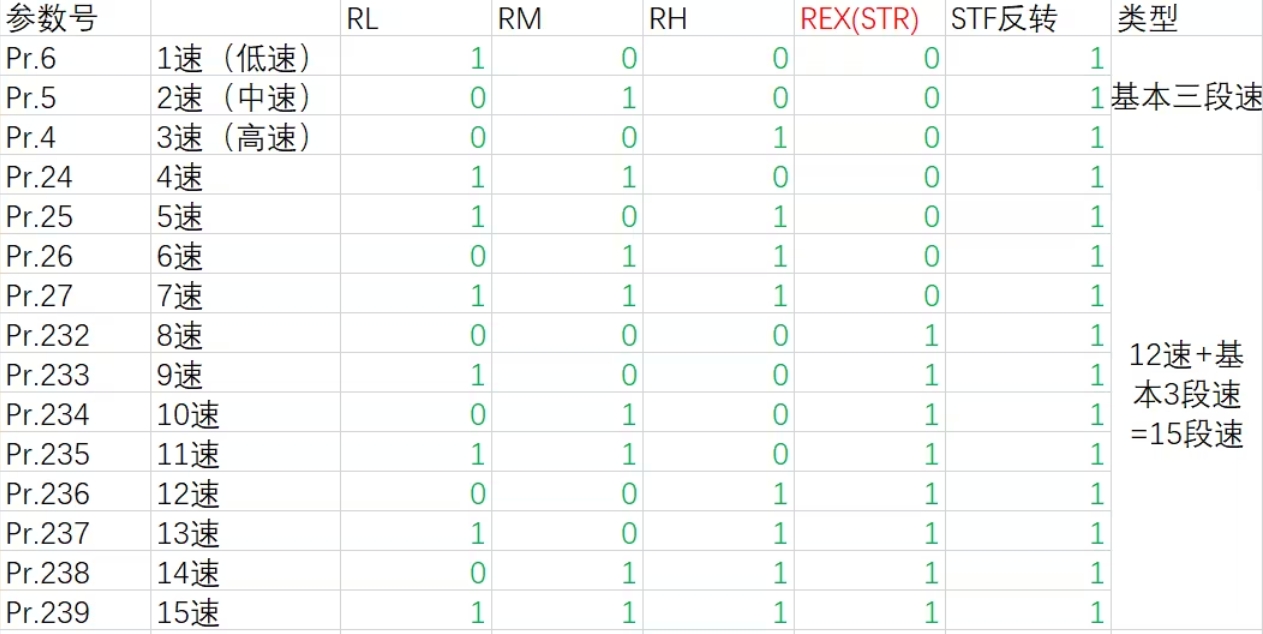 今天介紹一下三菱變頻器FR-D720S型號(hào)的15段速設(shè)置方法。