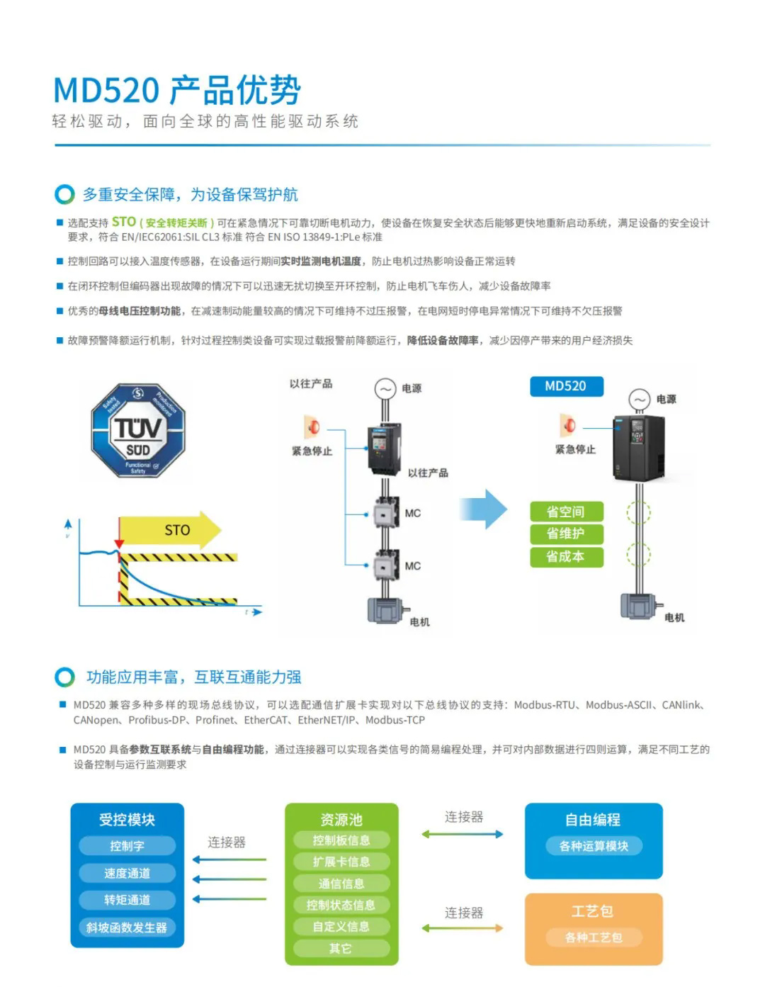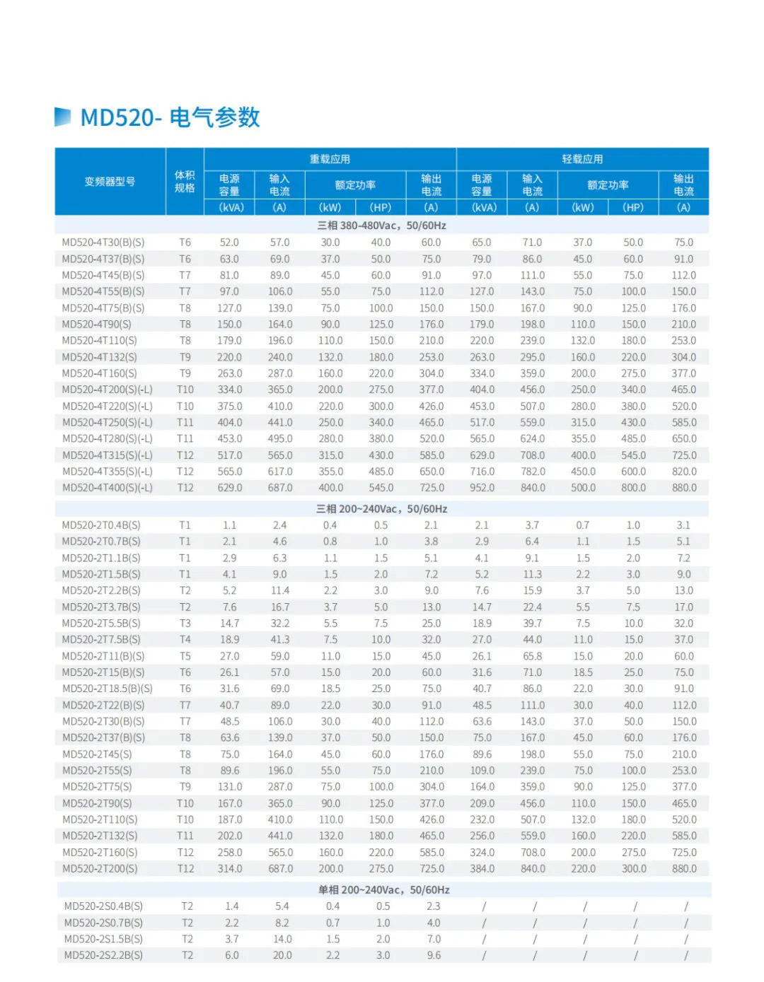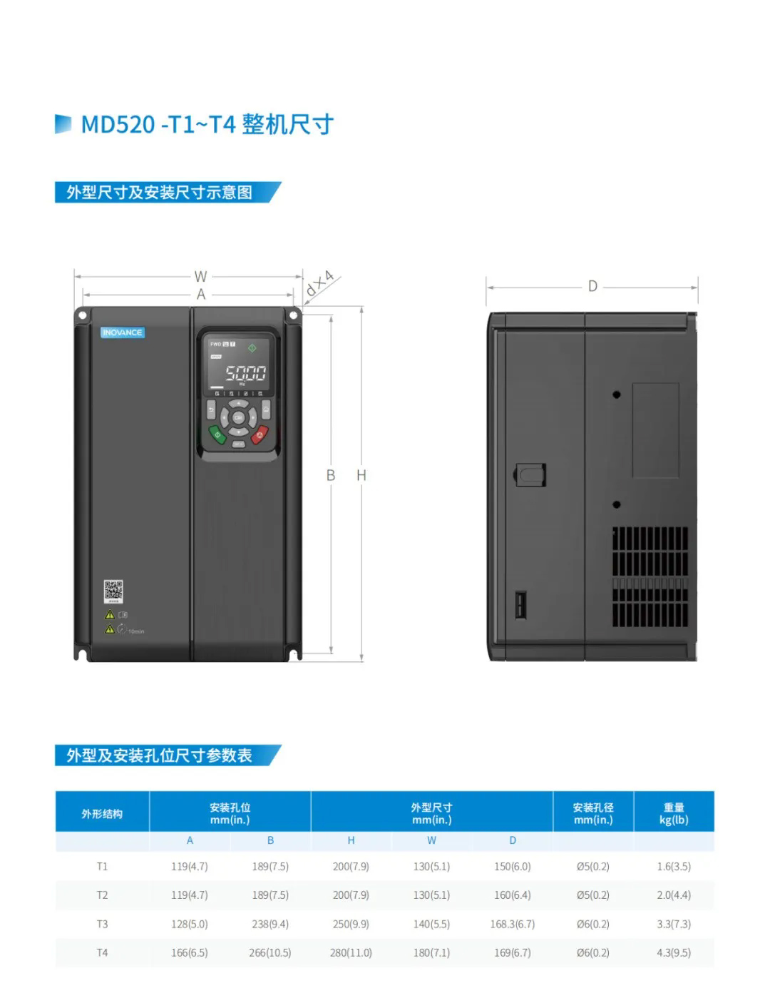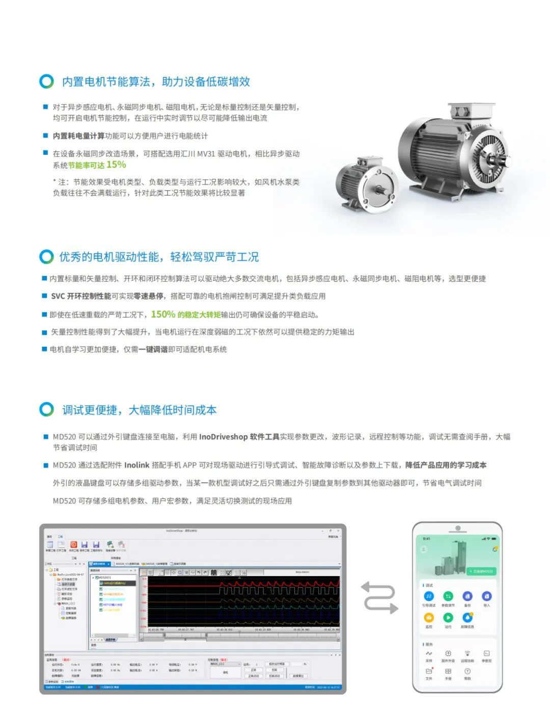 MD520系列變頻器是匯川的一款通用高性能電流矢量變頻器,主要用于控制和調(diào)節(jié)三相交流異步電機(jī)和三相交流永磁電機(jī)的速度和轉(zhuǎn)矩,可用于紡織、造紙、拉絲、機(jī)床、包裝、食品、風(fēng)機(jī)、水泵及其他自動(dòng)化生產(chǎn)設(shè)備的驅(qū)動(dòng)。