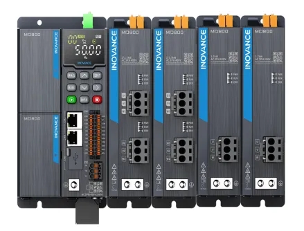 是匯川新一代低壓多點傳動系統(tǒng),其與AM610 / H3U 等PLC 高速總線組網(wǎng),實現(xiàn)一網(wǎng)調(diào)試,一網(wǎng)驅(qū)控,兼容異步及同步伺服電機,搭載23 bit 絕對值編碼器,實現(xiàn)變頻驅(qū)動良好效果。
