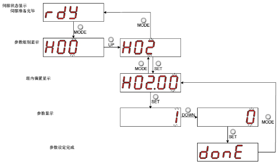 1. 許多參數(shù)運行中不能設(shè)置,但是DI5使能端子可能上電就導通,這時候面板顯示run狀態(tài),像參數(shù)方向H02-02、脈沖選擇H05-01、H02-31恢復出廠設(shè)置、H0D-11點動、H0D-02慣量辨識都不能設(shè)置,必須是rdy狀態(tài),這時候需要去掉使能。