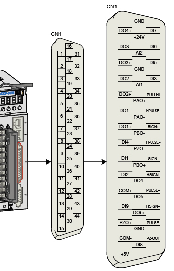 若可以正常運行,說明可能是CN1接線或者控制板卡(或PLC接口)有問題,若仍然不能正常運行,可能是伺服參數(shù)設(shè)置或者CN1這邊接口有問題;