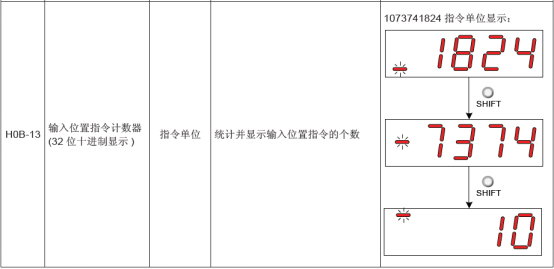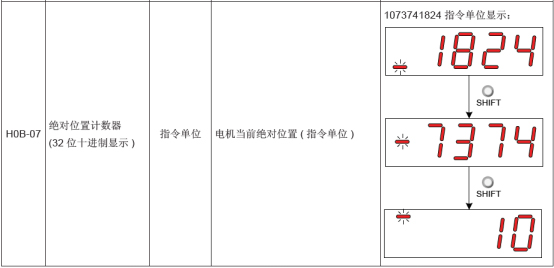 4、H0B-07是反應當前電機位置(指令單位),可以用來判斷編碼器是否正常,旋轉(zhuǎn)電機后,值的變化;