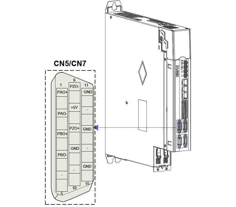 電機(jī)反饋端口上方的 CN5/CN7,為伺服編碼器分頻信號(hào)輸出,根據(jù)產(chǎn)品資料顯示,這個(gè)端口將為上位控制系統(tǒng)提供全閉環(huán)位置反饋。如果麥總沒(méi)有理解錯(cuò),編碼器分頻信號(hào)應(yīng)該可以在運(yùn)控設(shè)備(如:無(wú)軸印刷設(shè)備)中,為多軸位置同步系統(tǒng)(如:套色系統(tǒng))提供速度和相位的控制參照。