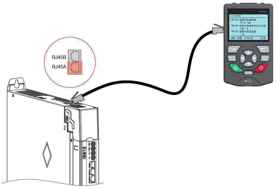 按照產(chǎn)品手冊(cè)描述,驅(qū)動(dòng)器頂部靠近面板側(cè),還有兩個(gè) RJ45 端口,可以在調(diào)試時(shí)用于連接手操器或者 PC 電腦。