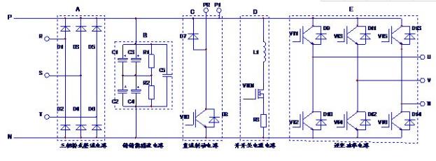 變頻器直流母線故障維修可以說,變頻器主電路的所有部分都是直接并聯(lián)(或 "掛")在直流母線上的,如圖1所示,常規(guī)的小功率機(jī)型大致有a~e等6個(gè)電路并聯(lián)在p、n直流母線上,中、大功率機(jī)型只有直流制動(dòng)電路,需要連接在變頻器外。