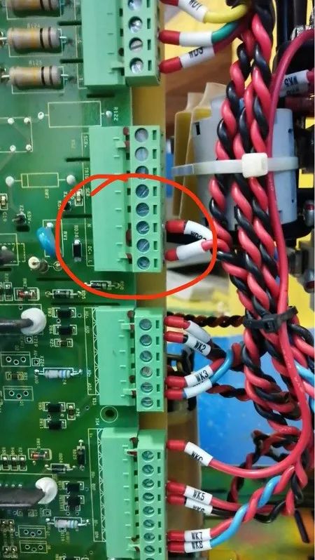 1.拆掉下圖紅圈中的兩根線WD21、WD22,然后接上AC220V的交流電,電路板的L2指示燈就會(huì)亮起來(lái)。