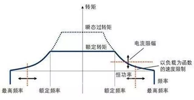 這種調(diào)速過(guò)程,電機(jī)的磁通保持恒定,電機(jī)的最大扭矩也是不變的,所以稱(chēng)之為“恒轉(zhuǎn)矩調(diào)速”模式,可以簡(jiǎn)單理解為在額定頻率以下的調(diào)速,都是這樣一種模式。