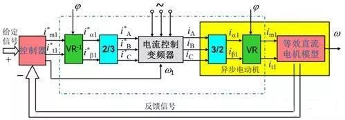 矢量控制是一種電機(jī)的磁場定向控制方法:以異步電動(dòng)機(jī)的矢量控制為例:它首先通過電機(jī)的等效電路來得出一些磁鏈方程,包括定子磁鏈,氣隙磁鏈,轉(zhuǎn)子磁鏈,其中氣息磁鏈?zhǔn)沁B接定子和轉(zhuǎn)子的。一般的感應(yīng)電機(jī)轉(zhuǎn)子電流不易測量,所以通過氣息來中轉(zhuǎn),把它變成定子電流。然后,有一些坐標(biāo)變換,首先通過3/2變換,變成靜止的d-q坐標(biāo),然后通過前面的磁鏈方程產(chǎn)生的單位矢量來得到旋轉(zhuǎn)坐標(biāo)下的類似于直流機(jī)的轉(zhuǎn)矩電流分量和磁場電流分量,這樣就實(shí)現(xiàn)了解耦控制,加快了系統(tǒng)的響應(yīng)速度。最后再經(jīng)過2/3變換,產(chǎn)生三相交流電去控制電機(jī),這樣就獲得了良好的性能。